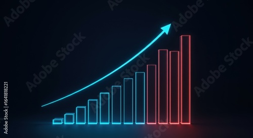 A vibrant neon bar chart illustrates a significant upward trend and positive financial growth, symbolizing business success and economic progress.