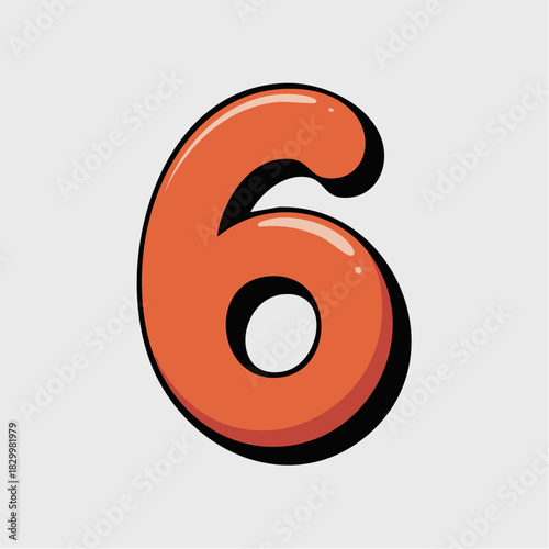 A vibrant orange cartoon number 6 with a glossy finish and dark outline on a light grey background.