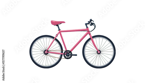 A vibrant pink bicycle with a sleek design stands out against a dark backdrop, ideal for transportation and recreation.
