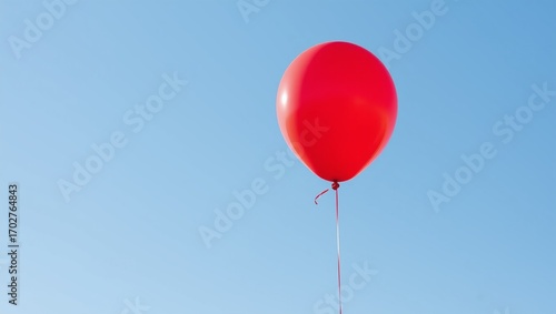 A vibrant red balloon floats against a clear, bright blue sky on a sunny day.