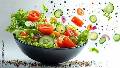 A vibrant salad composition featuring fresh vegetables, ideal for health-focused marketing, recipe blogs, or summer events like picnics and barbecues.