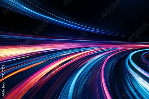 A vibrant speed line border encircles a sleek modern workspace, highlighting movement and innovation, perfect for dynamic presentations or creative digital content.