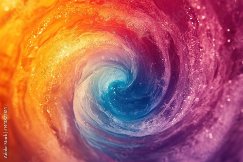 A vibrant swirl of colorful water, creating a mesmerizing vortex of blues, oranges, and purples.