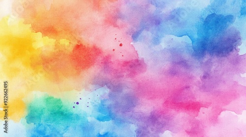 A vibrant watercolor abstract painting with a blend of rainbow colors creating a tranquil and artistic atmosphere.