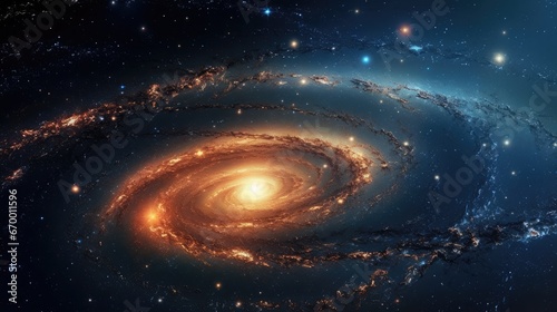 A view from space to a spiral galaxy and stars. Universe filled with stars, nebula and galaxy Generative AI