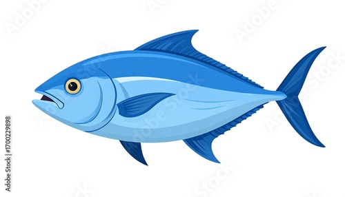 A vivid illustration showcases a vibrant blue tuna fish, presented in a profile view against a clean white background.