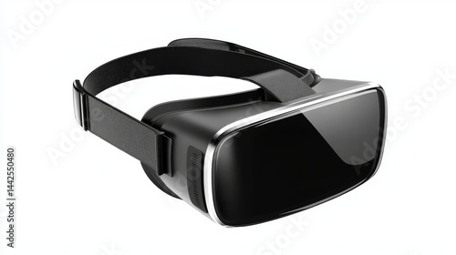 A VR headset is depicted on a transparent background in virtual reality