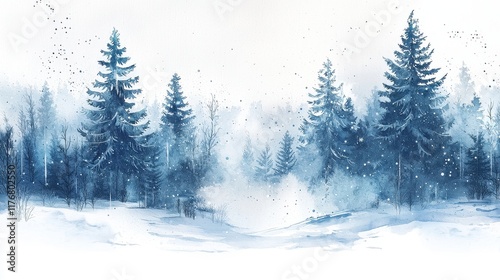 A Watercolor Painting Of A Snowy Winter Forest