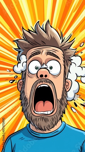A whimsical scene where a man comically sneezes, eyes popping out in exaggerated cartoon flair. Laughter guaranteed