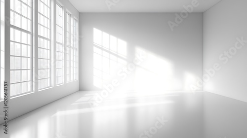 a white room with a large window