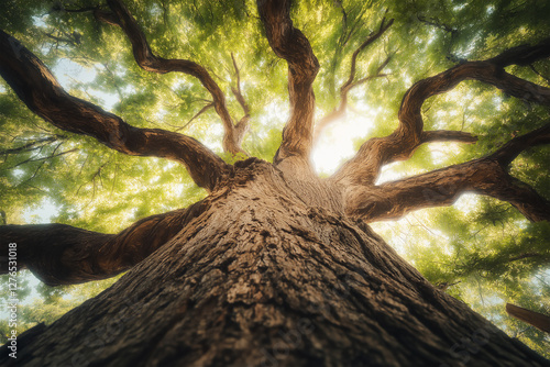 A wide shot of tall, healthy trees with sunlight filtering through the leaves, creating a serene and peaceful atmosphere, ideal for environmental or outdoor topics.