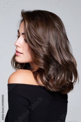 A woman with long brown hair is posing for a photo