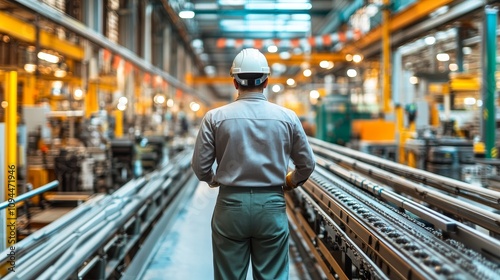 A Worker in a Busy Industrial Factory Setting