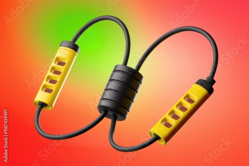 A yellow and black resistance band for fitness and exercise, ideal for strength training and flexibility improvement.