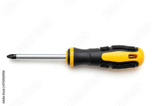 A yellow and black screwdriver isolated on a white background