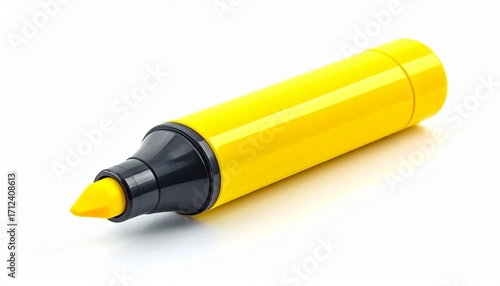 A yellow highlighter with a chisel tip rests uncapped on a white surface—its bold form and inked edge evoke crafted emphasis, minimalist rhythm, and the pulse of textual illumination.