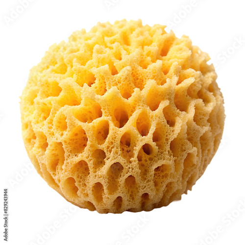 A yellow sponge with holes on transparent background