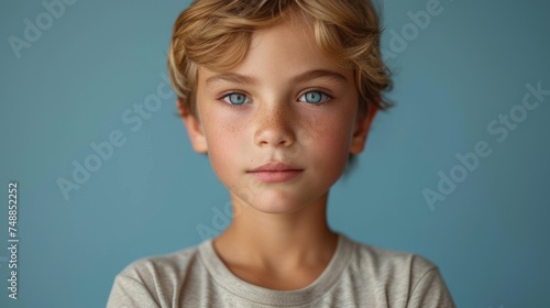 A young boy with blue eyes., The innocence of a child's face., A close-up of a young boy's features., The beauty of youth captured in a portrait..