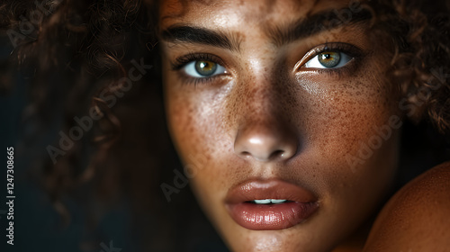 A young woman with striking clear eyes captured in a close-up portrait, radiating confidence and natural beauty. Perfect for showcasing youth, lifestyle, or beauty-focused content