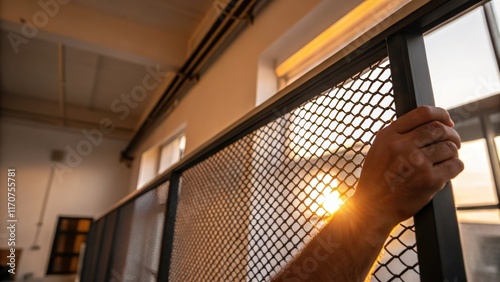 A zoomedin image capturing a hand gripping the edge of the mesh panel showcasing the robust construction against a backdrop of a partially revealed interior wall illuminated by the