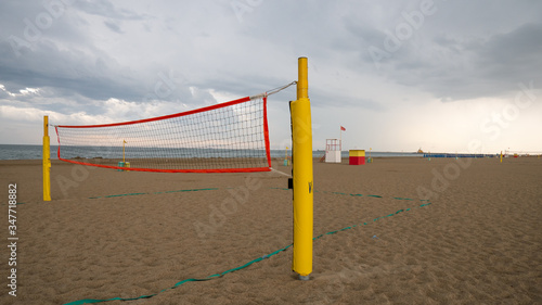 Abandoned beach volleyball court due to the approach of a storm.