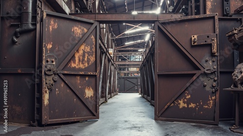 Abandoned Industrial Warehouse with Rusted Doors