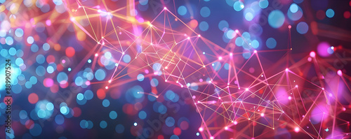 Abstract 3D Background with Glowing Lines and Bokeh Lights