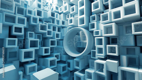 Abstract 3D Cubes Geometric Shapes Blue Background Modern Design Wall Texture Tunnel