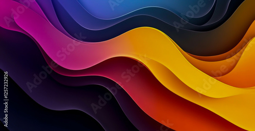 Abstract 3D fluid render with a vibrant color gradient, creating a wallpaper background design with enough space for text.