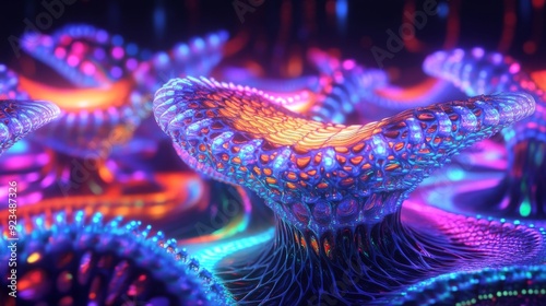 Abstract 3D Neon Bioluminescent Mushrooms