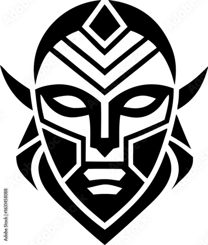 Abstract African Ritual Mask Outline Vector Graphic