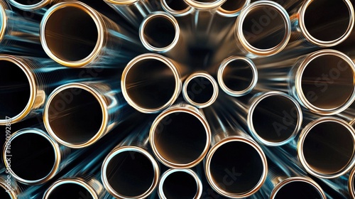 Abstract Arrangement of Stainless Steel Pipes
