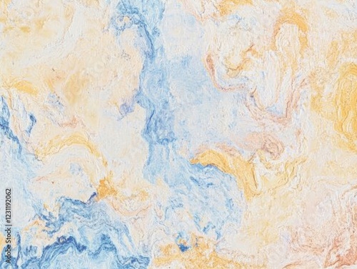 Abstract art with textured layers of light blue, tan, and creamy white in swirling patterns