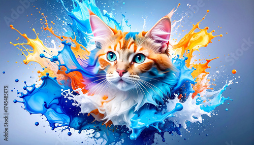 Abstract artistic cat with blue and orange swirls high resolution image