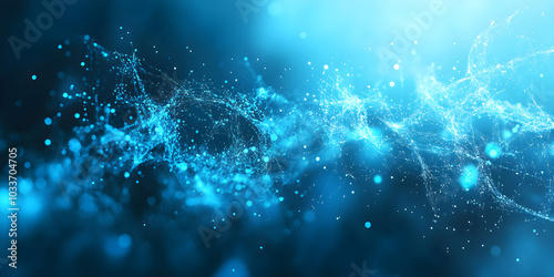 Abstract background features a mesmerizing display of blue hues and intricate patterns resembling ecological elements in a digital landscape