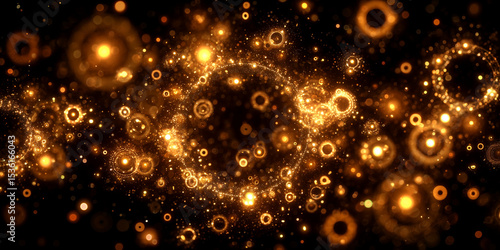 Abstract background featuring glowing golden circles and particles on a dark backdrop design art