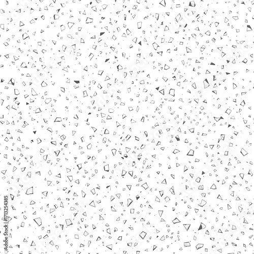Abstract background texture with scattered geometric shapes and speckles on a white canvas, ideal for graphic design elements