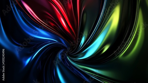 Abstract background with a dynamic swirl of rich jewel tones such as sapphire blue, ruby red, and emerald green
