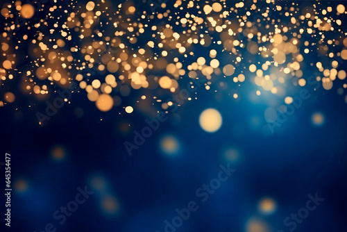 abstract background with Dark blue and gold particle. Christmas Golden light shine particles bokeh on navy blue background. Gold foil texture. Holiday concept.