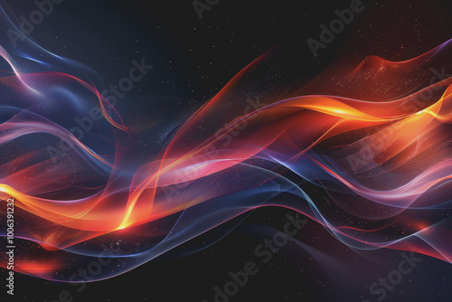 Abstract background with multicolored glowing waves on a black background. curve display.