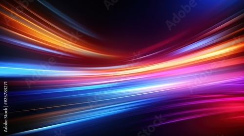 Abstract background with vibrant blue, orange and pink glowing lines.