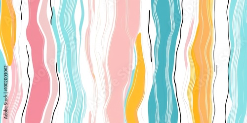 Abstract background with wavy lines in pink, blue, yellow and white.