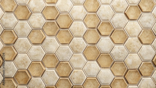 Abstract beige hexagon ceramic tiles with geometric cubes texture for decorative wall background