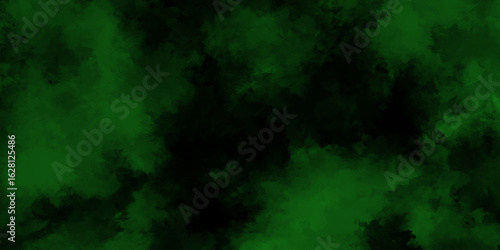 Abstract black background with green smokes. Dark green powder explosion on black background. Grungy dark canvas background.
