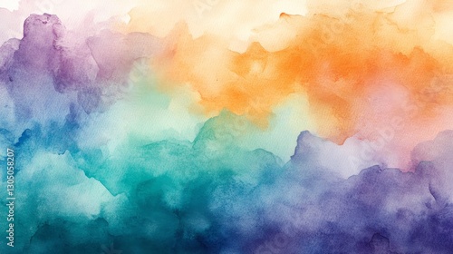 Abstract blending of watercolor paints, with delicate transitions between colors like orange, blue, green, and purple, creating a vibrant and soft pastel color palette.