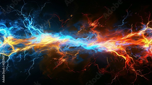 Abstract Blue and Red Lightning Energy Clashing