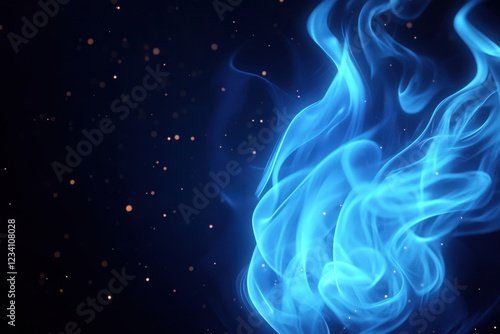 Abstract Blue Flames and Sparkling Dust Motes