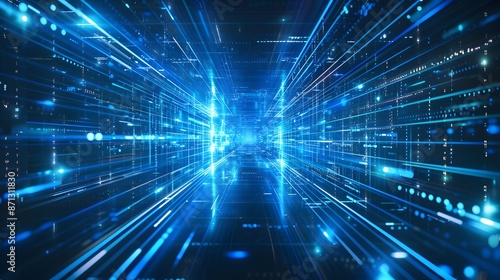 Abstract blue light trails in the dark, motion blur effect