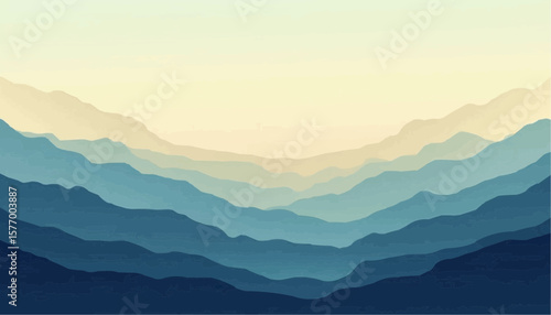 Abstract Blue Mountain Landscape with Soft Gradient Sky Artistic Nature Background