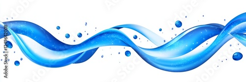 Abstract Blue Wave Design with Water Bubbles - A vibrant abstract illustration featuring flowing blue waves and water bubbles on a white background.